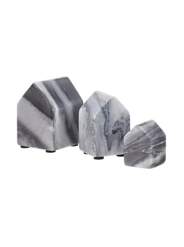 Sie errichten Ihr eigenes kleines Winterdorf mit dem 3-teiligen Blockhaus Deko Haus-Set aus Marmor. Am besten gruppieren Sie dazu mehrere dieser stilisierten Marmor-Dekorationen auf dem gedeckten Tisch, einem Deko-Tablett oder einer Fensterbank und ergänzen z.B. Tannengrün, Kerzen oder andere weihnachtliche Elemente. Und wenn Ihnen neue kreative Ideen kommen, bauen Sie Ihre Deko einfach um. Erhältlich in verschiedenen Größen aus weißem und grauem Marmor.