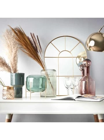 Schöner Schein: Der Finestra Fensterspiegel mit Metallrahmen in Gold zaubert mehr Licht in Ihr Wohnzimmer und setzt einen eleganten Akzent auf Ihrer Kommode oder Ihrem Sideboard. Als stilvolle Deko ergänzt er Ihre Einrichtung natürlich auch im Schlafzimmer oder Flur, gerne in Kombination mit trendigen Vasen, Windlichtern oder Deko-Objekten in Gold. In einer weiteren Größe erhältlich.
