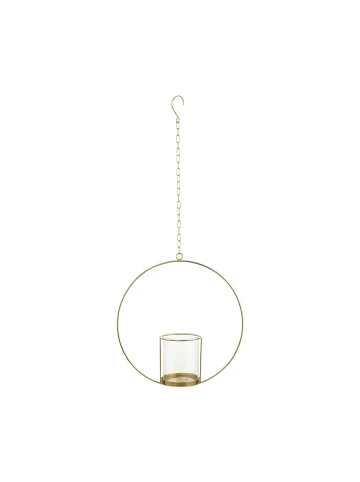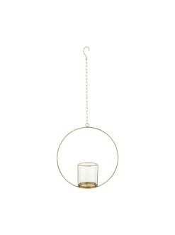 Viel Platz für Ihre kreativen Ideen bietet der Luna Hängedeko Ring mit Glaseinsatz in Gold. Sie verzieren ihn z. B. mit Ranken und anderem Grün, mit Blumengirlanden oder mit Bändern und hängen ihn dann an der Tür, an der Wand oder mitten im Raum an der Decke auf. Ein Teelicht noch dazu und fertig ist Ihre individuelle Dekoration, die als Unikat Ihr Zuhause oder auch Ihr Hochzeitsfest schmückt.