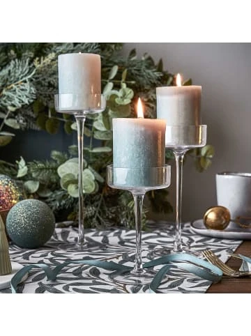 Der 3-teilige William-Kerzenhalter-Set aus klarem Glas weckt mit seiner formvollendeten Erscheinung Erinnerungen an einen stolzen Pokal. Für Stumpenkerzen.