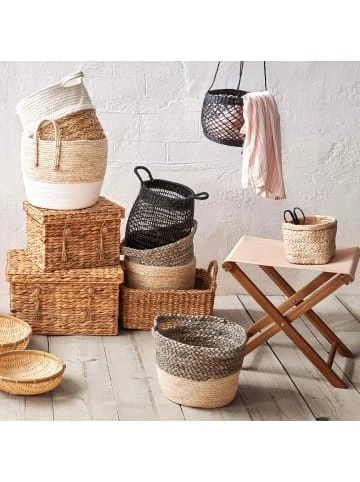 Der geflochtene rechteckige Rush Rope Korb aus Wasserhyazinthe und Metall ist überall in Ihrem Zuhause zur Stelle, wo dies und das sonst kreuz und quer herumliegen würde. Weitere Varianten erhältlich.