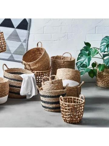 Der geflochtene runde Rush Rope Korb aus Jute und Wasserhyazinthe mit Griffen ist überall in Ihrem Zuhause zur Stelle, wo dies und das sonst kreuz und quer herumliegen würde. Weitere Varianten erhältlich. – Geflecht – Landhaus – Zeitlos
