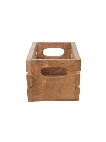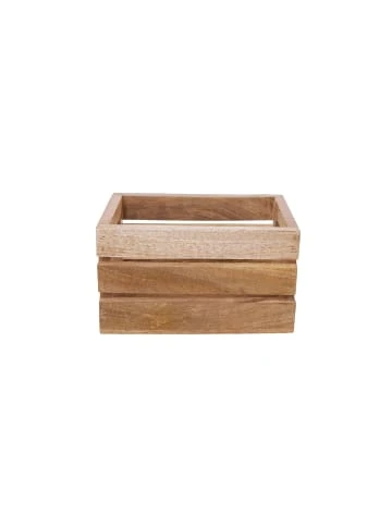 In punkto Dekorieren und Aufbewahren hat die Mango Days Mangoholzkiste in Größe S einiges auf dem Kasten – ob in Küche, Flur, Wohnzimmer oder Home Office. Das charakteristische Design ist von Weinkisten oder Gemüsekisten aus Holz inspiriert, mit praktischen Griffen zum Transportieren und Räumen. Weitere Größen und auch als Set erhältlich.