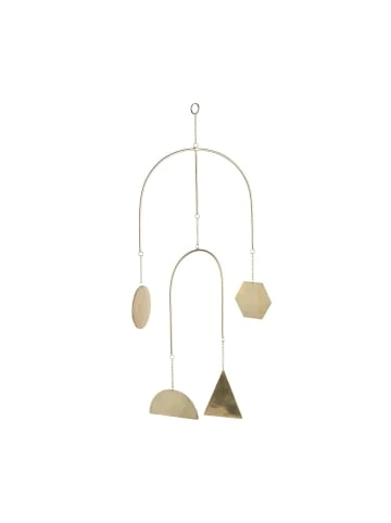 Sie genießen meditative Momente, während Sie in aller Ruhe dem goldfarbenen Peaceful Home Mobile aus Eisen und Aluminium zuschauen. Seine 4 Ornamente bewegen sich sanft im Luftzug, und bei diesem dekorativen Anblick vergessen Sie alles um sich herum.
