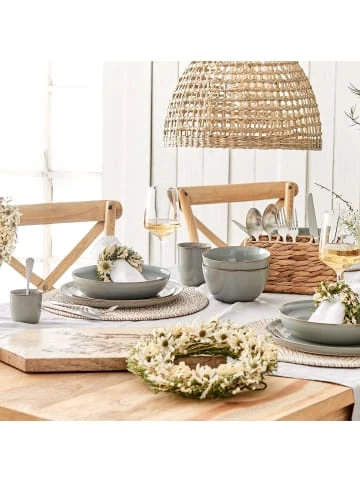 Dekos mit Trockenblumen sind ja so angesagt – und jetzt noch schöner mit dem weißen Flower Market Trockenblumenkranz. Dieser dekorative Kranz mit gut 24 cm Durchmesser wird zum Hingucker auf Ihrem gedeckten Tisch – und sogar zum verspielten Highlight Ihrer festlichen Tafel. Einfach Kerzen und Servietten farblich darauf abstimmen, und schon ist der Look perfekt. Mit sorgfältig zusammengestellten Trockenblumen und langer Haltbarkeit – ganz ohne Pflege. In weiteren Varianten erhältlich, zudem gibt es passende Serviettenringe.