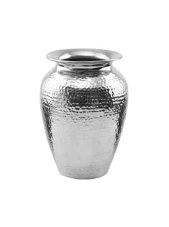 Die silber glänzende Oriental Lounge Vase aus Metall lässt mit ihrer typischen Hammerschlagoptik und traditionellen Form den Zauber von 1000 und 1 Nacht aufleben. In einer weiteren Größe erhältlich. – Einfarbig – Struktur – Klassisch – Opulent