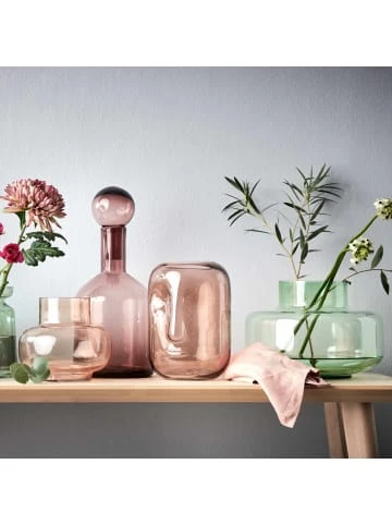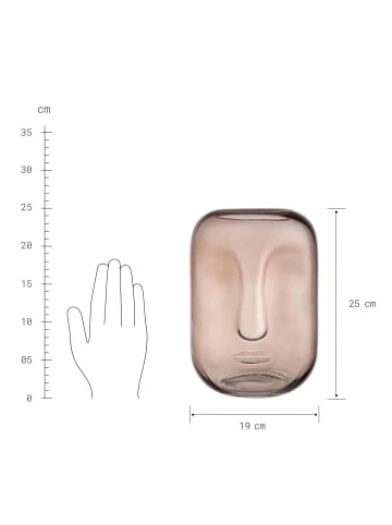 Dekorieren mit Profil: Die mundgeblasene Anoki Vase mit Gesicht aus hellbraun durchgefärbtem Glas greift einen der gerade so angesagten Dekotrends auf. Denn Gesichtsmotive schmücken gerade Vasen, Blumentöpfe, Schalen – und damit das modische Zuhause.