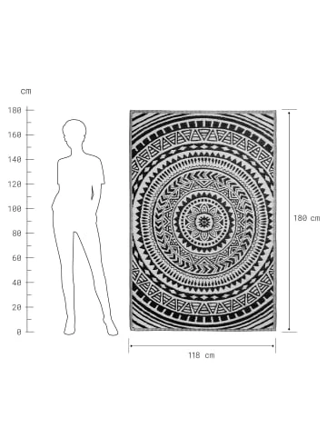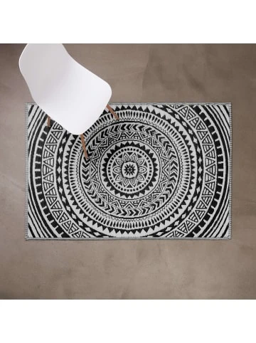 Weil Sie auf wohnlich und zugleich pflegeleicht stehen, legen Sie sich den modernen Colour Clash Outdoorteppich mit schwarz-weißem Circle-Muster und Bastteppich-Struktur zu Füßen. Und das nicht nur auf Ihrem Balkon oder Ihrer Terrasse, sondern gerne auch indoor im Wohnbereich. So läuft es sich drinnen wie draußen spürbar angenehm. Aus robustem Kunststoffgewebe, UV-beständig. – Robustes Kunststoffgewebe: UV-beständig – Moderner Look: für das unkomplizierte Wohnen und Leben – Vielseitig: für Indoor und Outdoor geeignet