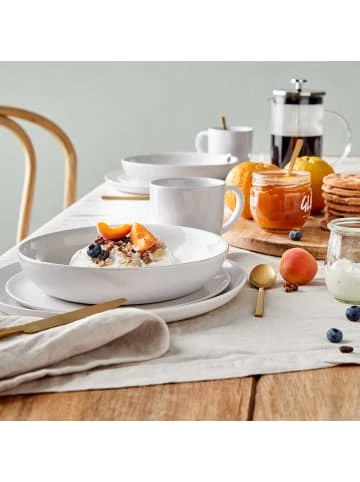 Mit unserer Geschirrserie Native im angesagten minimalistischen Design kommt der neue Trend auf den gedeckten Tisch! Der tiefe Teller im 4er-Set aus Steinzeug in der Farbe Weiß ist handgefertigt in Portugal und hat eine dünne und hochwertige Scherbe mit einer klaren Formgebung. Durch die reaktive Glasur mit kleinen Kristalleinschlüssen wird jedes Teil der Serie zu einem echten Unikat. Der unglasierte Boden, der das Rohmaterial zum Vorschein bringt, sorgt für einen formvollendeten Manufaktur-Look. Jedes Teil der Serie ist spülmaschinen- und mikrowellengeeignet. – Jedes Teil ein Unikat: Natürliche Unterschiede bei der Farbgebung – Für den täglichen Gebrauch – Geschirrspülmaschinen- und mikrowellengeeignet