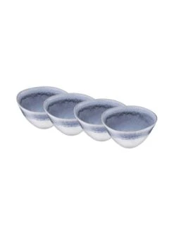 Mit unserer Geschirrserie Atlantis im angesagten Boho-Stil und organischen Formen kommt Extravaganz auf den gedeckten Tisch! Die Schale im 4er-Set aus Steinzeug ist handgefertigt in Portugal. Durch die reaktive Glasur entstehen unregelmäßige Farbverläufe, die jedes Teil der Serie zu einem echten Unikat werden lassen. Atlantis ist in verschiedenen Farben erhältlich, die Sie miteinander kombinieren können und so für Abwechslung auf Ihrem Tisch sorgen. Durch eine Iris-ähnliche Farbzentrierung passen alle Teile perfekt zusammen. Jedes Teil der Serie ist spülmaschinen- und mikrowellengeeignet. – Reaktive Glasur: Jedes Teil ein Unikat, durch Unterschiede bei der Farbgebung – Für den täglichen Gebrauch – Geschirrspülmaschinen- und mikrowellengeeignet