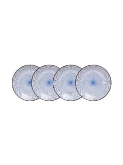 Der runde, kleine Teller im 4er-Set mit einem Durchmesser von 16 cm aus der kunstvollen Dim Sum-Serie lässt sich besonders ästhetisch mit den weiteren blauen Deko-Tellern und Suppenschalen kombinieren und ist daher perfekt für Events und Abendessen mit Familie und Gästen geeignet. So können Sie auf dem kleinen Dessertteller sowohl klassische asiatische Gerichte kredenzen oder Ihre Gäste mit der neuen Crossover Weltküche überraschen. – Glänzende Keramik mit Muster in kunstvoller Symmetrie – Hitzebeständig, robust und edel – Harmonie: Beruhigende Gleichmäßigkeit für positive Feng Shui Energie – Modern Asia Design kombiniert mit schlichtem Clean Living – Stilvolles Ambiente für besondere Anlässe
