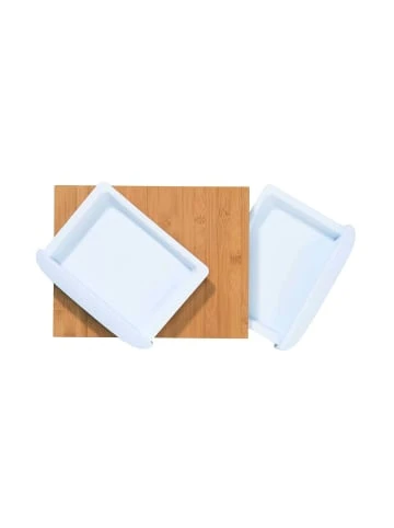Das Bamboo Bambussbrett mit zwei Auffangschalen aus Kunststoff denkt als Küchenhelfer mit: Nach dem Schneiden lassen sich z. B. Kräuter, Gemüsestückchen oder Zwiebelwürfel schnell und einfach in eine der Schalen befördern – und stehen nun beim Kochen, beim Zubereiten oder am gedeckten Tisch griffbereit. – Einfarbig – Klassisch