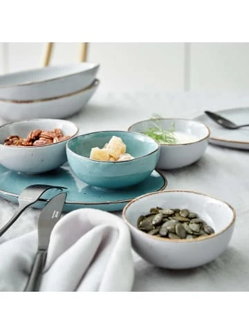 ¡que bonito! Der hochwertige Handmade Look der Finca Dipschale aus Porzellan fällt sofort ins Auge. Kein Wunder: Die reaktive Glasur mit natürlichen Sprenkeln, die authentische Form und die Vintage Optik erinnern an echtes Handwerk, wie man es nur noch in alten Manufakturen findet. Damit ist Finca kein Geschirr „von der Stange“, sondern deckt Ihren Tisch mit individuellen Schmuck- und Sammlerstücken. Weitere Schalen sowie passende Teller und Tassen erhältlich. – Reaktive Glasur: Jedes Teil ein Unikat, durch Unterschiede bei der Farbgebung
