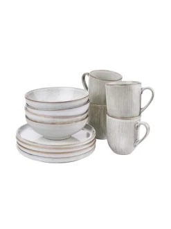 Im Spiel zwischen feiner Sprenkelung, zarter Linienführung und klassisch-robustem Steinzeug bringt das 12-teilige Frühtücksset der Henley-Serie Qualität auf den Tisch. Das Set aus jeweils vier Tassen, Schalen und Tellern ist hervorrgend geeignet um den ganzen Tisch im beliebten Landhausstil einzudecken. Das Steinzeug-Geschirr der Henley-Reihe verfügen über eine sanfte Riffelung die jedes Stück zum Unikat macht und so den Tellern, Tassen und Schalen einen ganz individuellen Charme verleiht. – Hochwertige Keramik: Robust und hitzebeständig – Jedes Teil ein Unikat: Natürliche Unterschiede bei der Farbgebung – Reaktive Glasur: Jedes Teil ein Unikat, durch Unterschiede bei der Farbgebung – Ein natürlicher Look mit Charme und Charakter – Im Trend: Skandinavisches Design – Geeignet für jeden Anlass durch schlichte und solide Machart