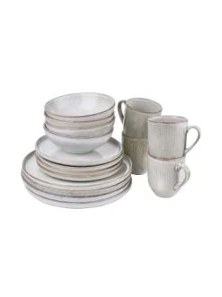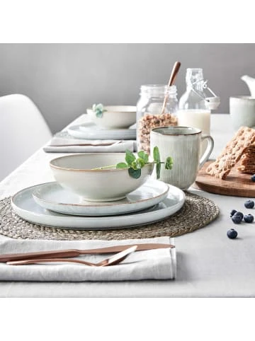 Im Spiel zwischen feiner Sprenkelung, zarter Linienführung und klassisch-robustem Steinzeug bringt das 16-teilige Geschirrset der Henley-Serie Qualität auf den Tisch. Das Set aus jeweils vier Tassen, Schalen, Frühstückstellern sowie großen Speisetellern ist hervorrgend geeignet um den ganzen Tisch im beliebten Landhausstil einzudecken. Das Steinzeug-Geschirr der Henley-Reihe verfügen über eine sanfte Riffelung die jedes Stück zum Unikat macht und so den Tellern, Tassen und Schalen einen ganz individuellen Charme verleiht. – Hochwertige Keramik: Robust und hitzebeständig – Jedes Teil ein Unikat: Natürliche Unterschiede bei der Farbgebung – Reaktive Glasur: Jedes Teil ein Unikat, durch Unterschiede bei der Farbgebung – Ein natürlicher Look mit Charme und Charakter – Im Trend: Skandinavisches Design – Geeignet für jeden Anlass durch schlichte und solide Machart