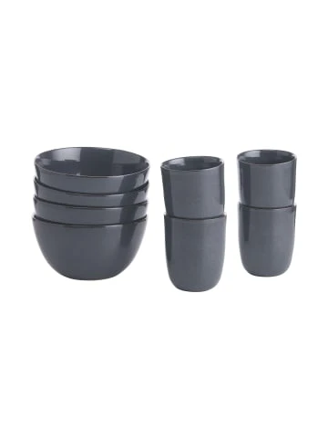 Mit unserer Geschirrserie Native im angesagten minimalistischen Stil kommt der neue Trend auf den gedeckten Tisch! Das 8-tlg. Geschirr-Set aus Steinzeug in der Farbe Grau ist handgefertigt in Portugal. Durch die reaktive Glasur wird jedes Teil der Serie zu einem echten Unikat. Das Set hat eine dünne und hochwertige Scherbe mit einer klaren Formgebung. Durch den unglasierten Boden, wodurch das Rohmaterial zum Vorschein kommt, bringt er einen Manufaktur-Look auf Ihren gedeckten Tisch. Die zusätzlichen Kristalle in der Glasur machen die stilvolle Geschirrkollektion zu etwas ganz Besonderem. Jedes Teil der Serie ist spülmaschinen- und mikrowellengeeignet. – Jedes Teil ein Unikat: Natürliche Unterschiede bei der Farbgebung – Für den täglichen Gebrauch – Geschirrspülmaschinen- und mikrowellengeeignet