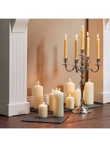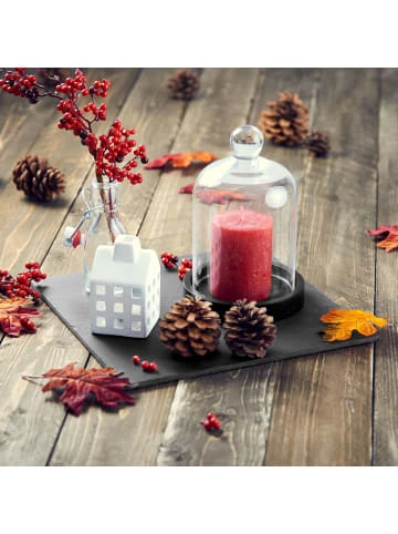 Die raue Schönheit der Natur zeigt sich in diesem schlichten Untersatz aus abgeschliffenem Schiefer. Er schützt empfindliche Tische oder Sideboards vor Kratzern, vor Hitze (z. B. von Laternen oder Kochtöpfen) und vor feuchten Ringen, die durch Flaschen und abgestellte Gläser entstehen können. Doch die Schieferplatte beweist auch bei Dekorationen viel Talent: Es können z. B. mehrere massive Stumpenkerzen auf dem Untersatz angeordnet werden. Auf der Unterseite mit weichen Füßen versehen. In weiteren Größen erhältlich. – Einfarbig
