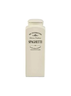 „Die dekorative Spaghettidose aus Steingut unserer Serie Mrs. Winterbottom’s kommt im hellen Landhausstil daher und bringt als praktischer Vorratsbehälter Ordnung mit System in ihre Küche. Der Spaghettitopf mit Deckel aus Keramik ist ein hohes Gefäß und luftdichter Lebensmittelbehälter zur idealen Aufbewahrung italienischer Nudeln und der Lagerung von Trockenfrüchten, Getreide, Haferflocken oder Nüssen. „ – Nur bei Butlers! Exklusives Design – Robustes Steingut: Sicheres Aufbewahren leicht gemacht – Englischer Vintagestil als perfekt passendes Sortiment – Praktische, eckige Form für Ordnung in der Küche – Luftdicht verschließbarer Deckel
