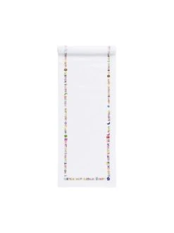 Wer Geburtstag hat, darf sich verwöhnen lassen – mit Glückwünschen, Aufmerksamkeiten und einer fröhlichen Dekoration. Dieser leichte Tischläufer aus reiner Baumwolle ist umlaufend bunt bestickt: mit den Wörtern „Happy Birthday“, kleinen Blumen, Kerzen, Sternen, Monden und Geschenken. Apropos Geschenke: Die lassen sich perfekt auf dem Tischläufer präsentieren, am besten direkt neben der Geburtstagstorte. Übrigens: Zu diesem Tischläufer sind passende Servietten erhältlich. – Geburtstag – Spruch – Motiv – Geburtstagsfeier – Kindergeburtstag – Klassisch – Zeitlos
