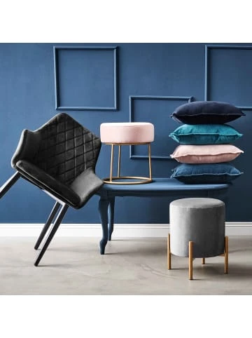 In edler Samt-Optik präsentiert sich unser Velvet-Stuhl im 2er-Set. Die hochwertigen Rücken- und Armlehnen bieten höchsten Komfort und gewährleisten einen bequemen Sitz. Abgerundet wird das Design durch das Muster in der Rückenlehne und die nach unten hin zulaufenden Metallbeine, die in matter Optik einiges hermachen. Dieses Möbelstück lässt sich zudem problemlos kombinieren und eignet sich optimal für das Wohn-, Ess-, oder Schlafzimmer. – Hochwertige Verarbeitung – Hoher Sitzkomfort: Weicher, Samtbezug – Ansprechendes Design – Edle Optik