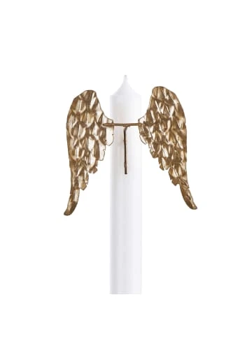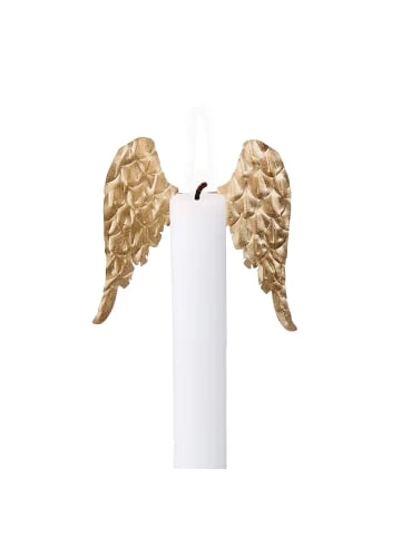 Sie machen Ihre Kerzen zu einem außergewöhnlichen Schmuckstück mit der Jewelry Kerzen Dekoration Engelsflügeln. Dieser Blickfang aus goldfarbenem Metall hat zwei Dorne, die einfach in die Kerze gesteckt werden, und schon ist die Kerze dekoriert. Die Befestigung ist von vorne unsichtbar, die Engelsflügel scheinen zu schweben. So schaffen Sie mit der Jewelry Kerzen Dekoration außergewöhnliche Hingucker z.B. auf Kommoden und Sideboards, auf Fensterbänden und dem gedeckten Tisch. Weitere Varianten erhältlich.